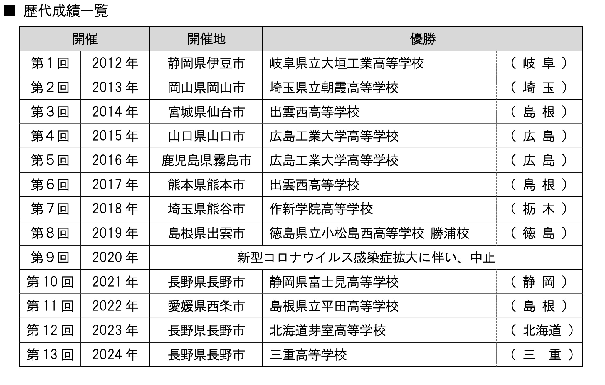 歴代優勝校一覧