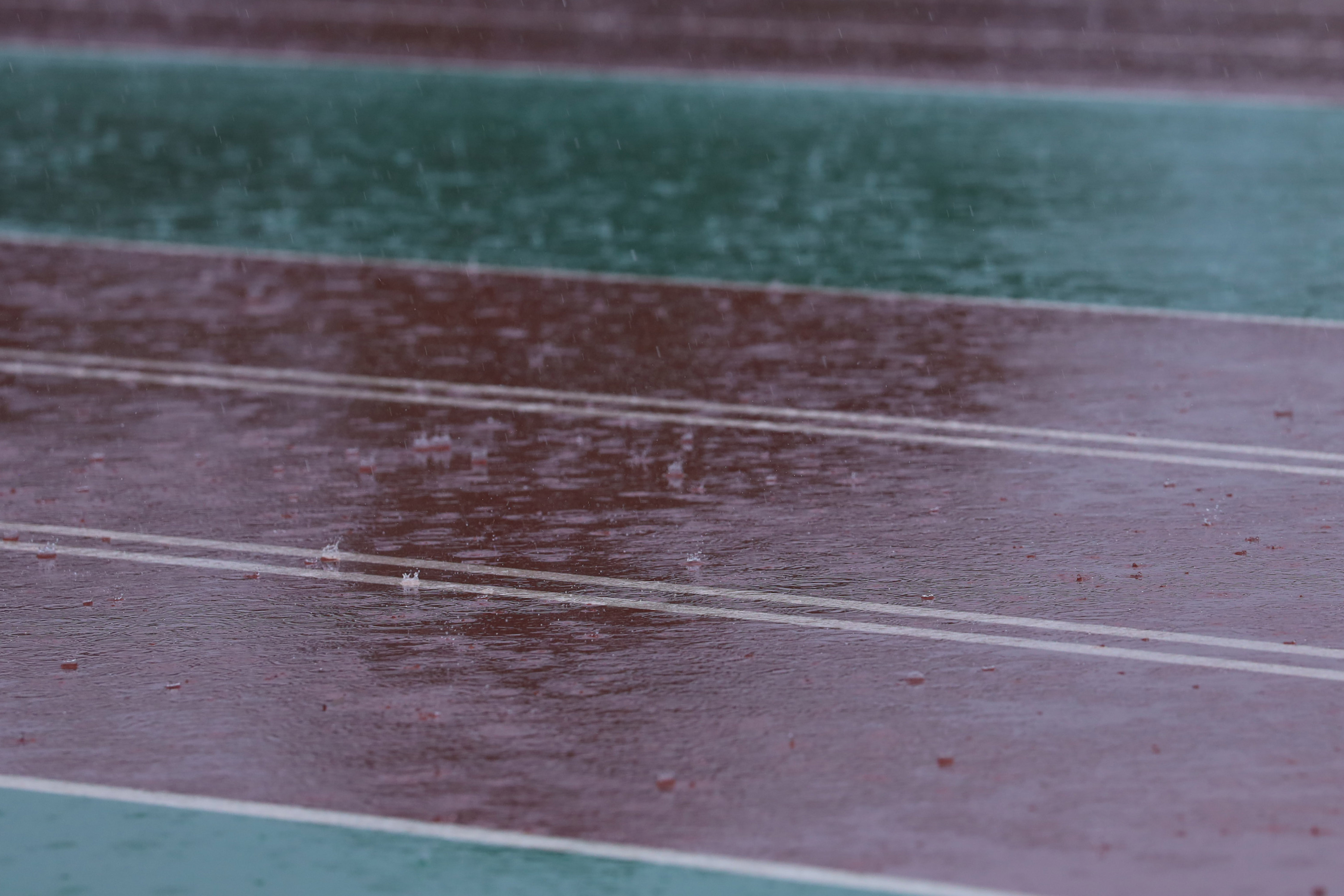 大会前日の徳島市はあいにくの雨。昼頃からさらに雨脚が強まる予報だったため、施設管理者と芝の状態を確認した結果、翌日以降の試合への影響を考慮し、公開練習の中止が決定されました。