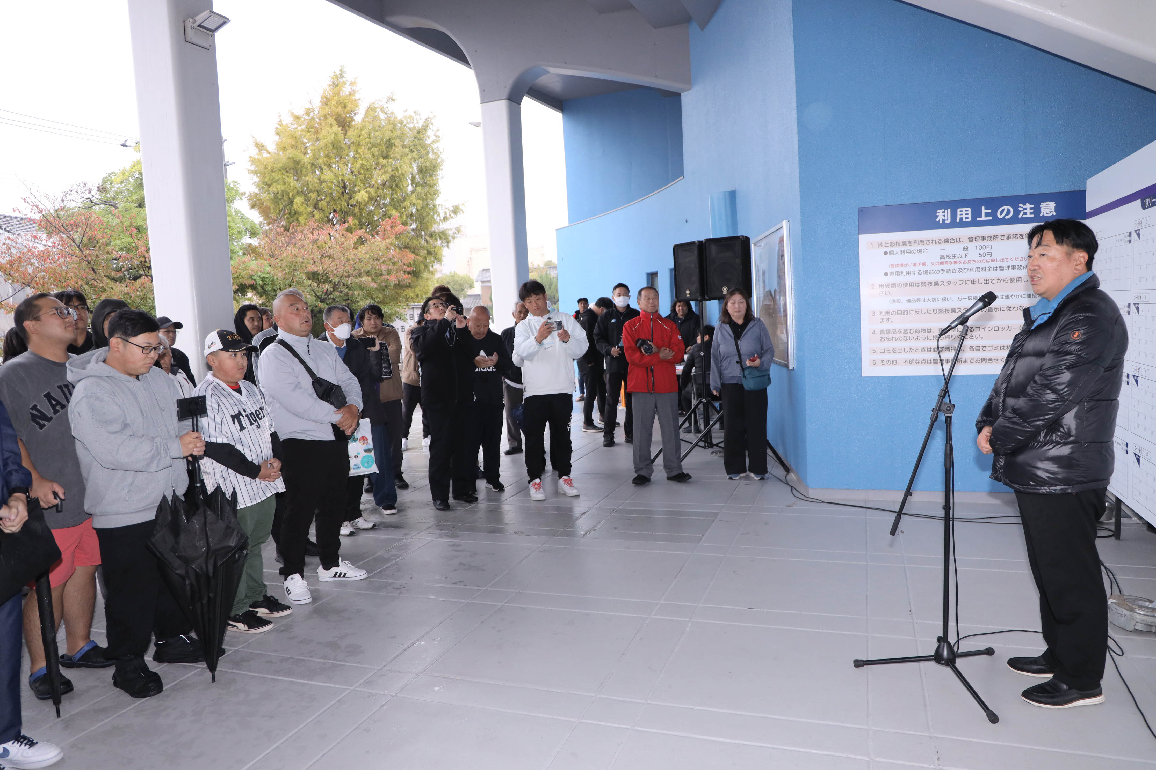 同競技場は2020年にリニューアルオープン。芝生も一新され、普段は陸上競技大会のほか、サッカー大会などでも広く利用されています。今回はそのグラウンドに、12面のゲートボールコートが設置されます。