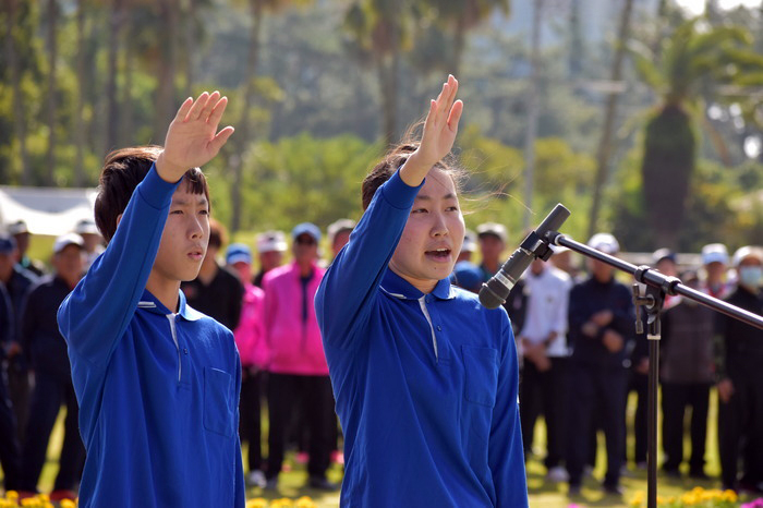 前回優勝の鹿児島代表・來蓮華チームから姉弟のジュニア選手による元気いっぱいの選手宣誓