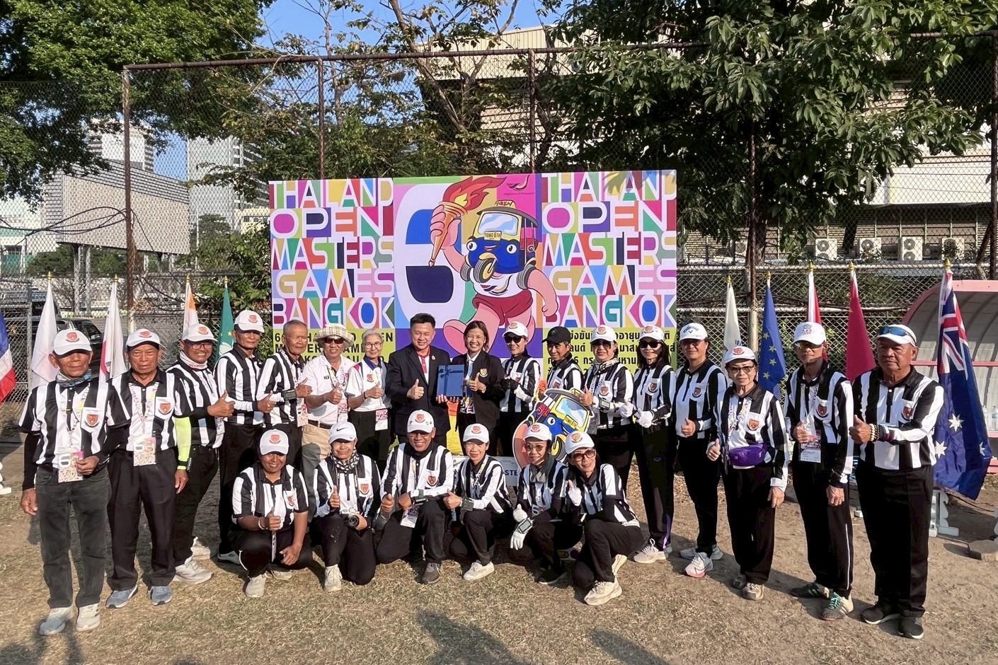 タイゲートボール連合主催による国際オープン大会「第6回タイオープンマスターズゲームズ2026 ゲートボール大会」が、2026年1月7日(水)から11日(日)までの5日間、タイ・バンコク市のジンダラック・スタジアム(天然芝コート)で開催されました。