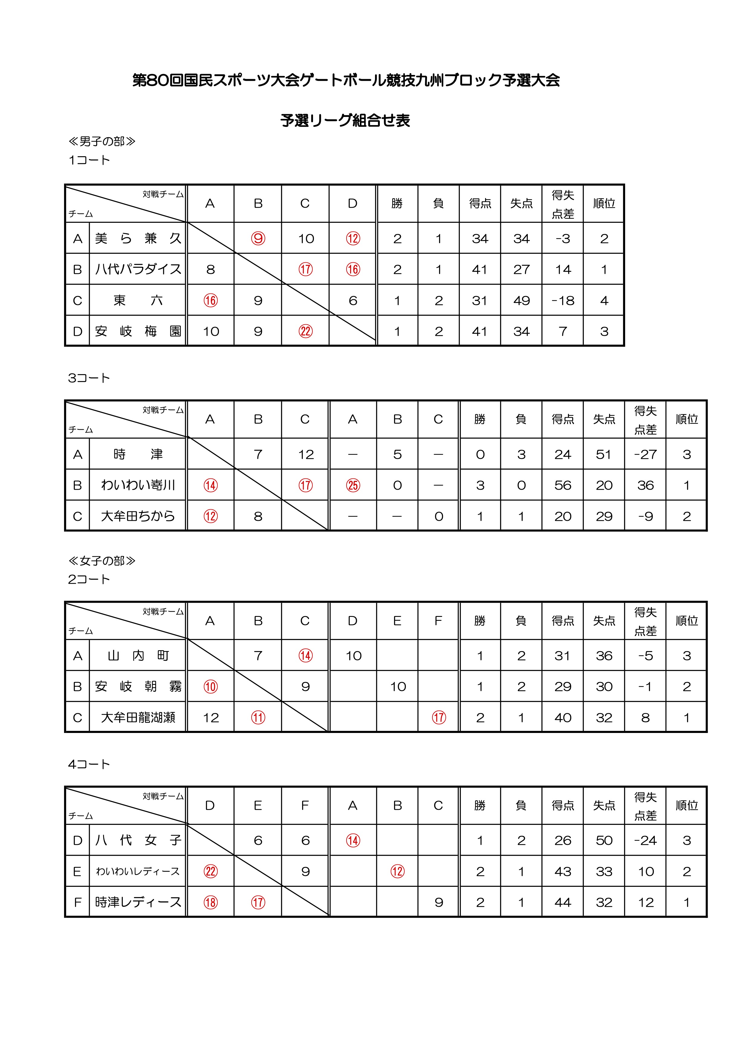 【予選結果】第80回国スポ[公開競技]競技会 九州ブロック予選大会