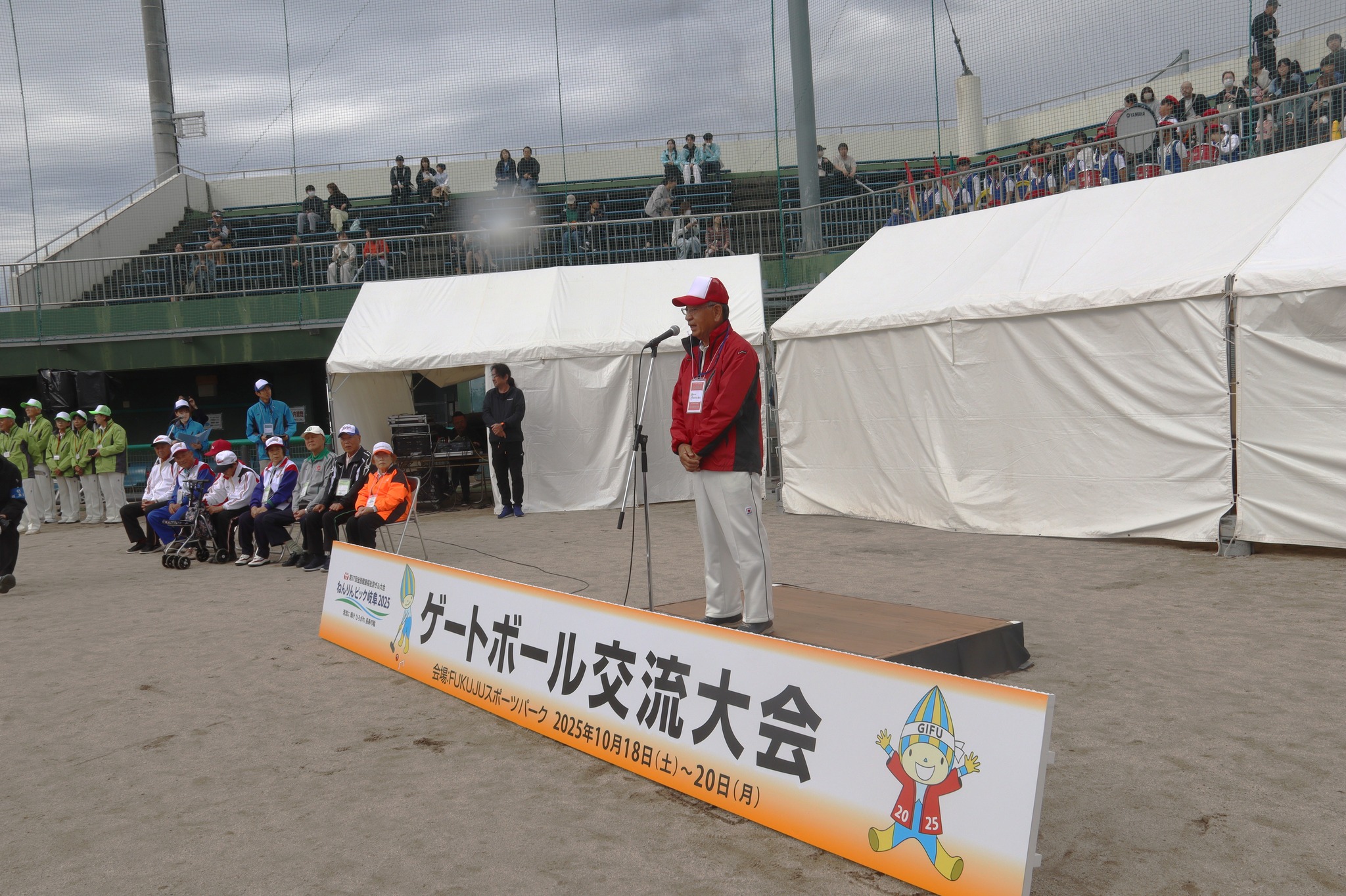 岐阜県ゲートボール連盟の松村会長(競技実行委員長)による開会宣言