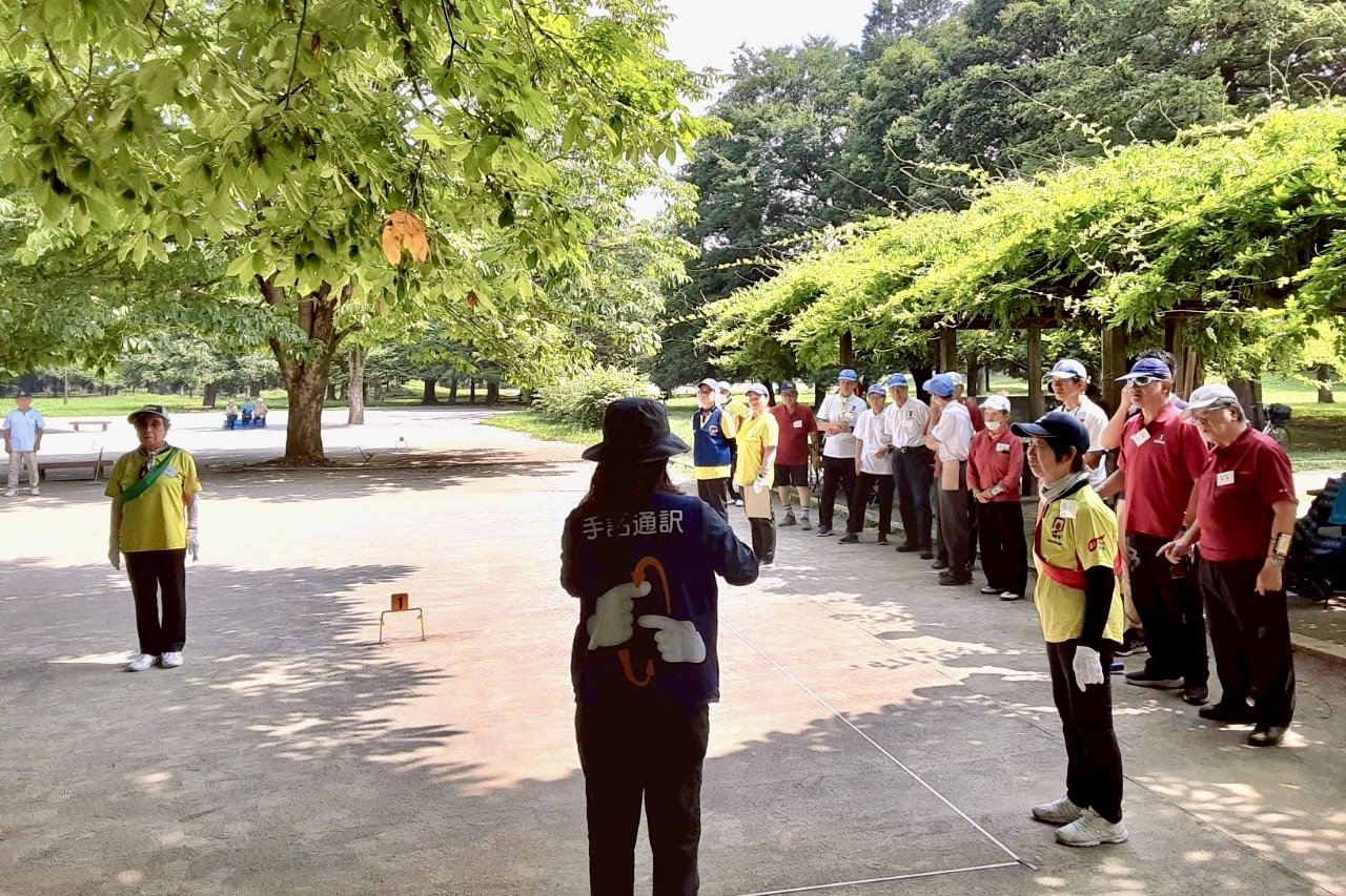 東京ゲートボール連合では、聴覚障がい者と健常者が共にプレーできる環境整備を進めています。