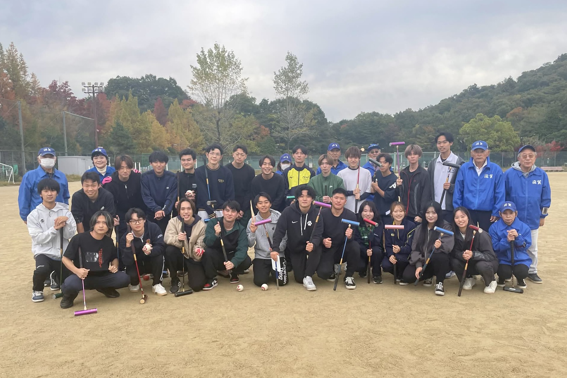 滋賀県の立命館大学びわこ・くさつキャンパスでは、今年もゲートボール体験授業が行われ、滋賀県ゲートボール連盟の皆さんが指導協力しました。