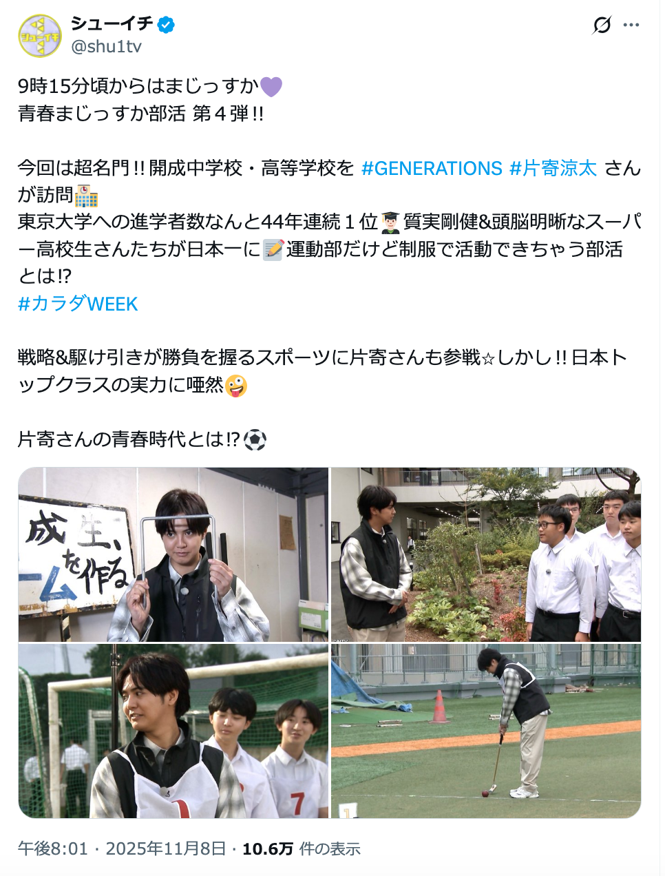 ▼番組公式Xでの告知投稿は、約10万6000人に閲覧されました