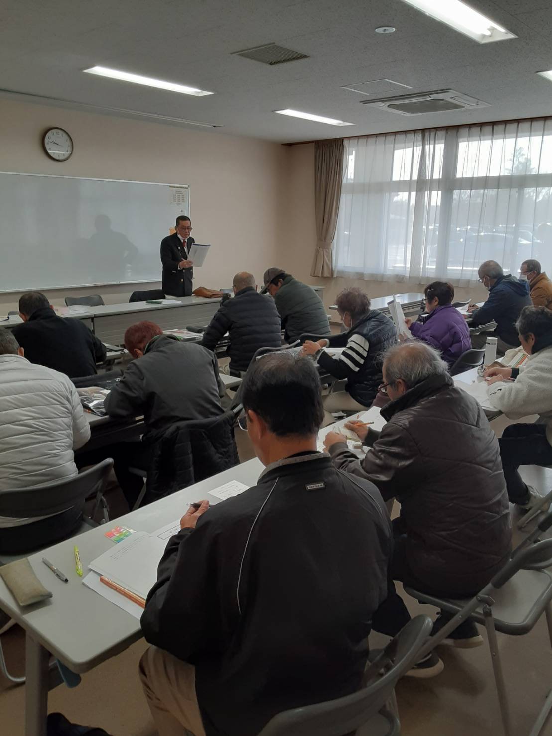 1級・2級試験は1月30日に前橋市・巣烏公民館で行われ、1級に2名、2級に13名が挑戦。事前に1週間の講習会を実施し、「審判員資格試験想定問題集」などを用いて学科の準備を進めました。